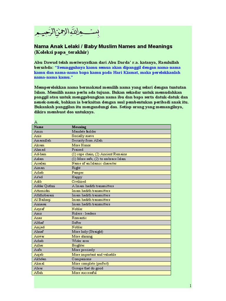 Nama Anak Lelaki Muslim Boy Names Pdf